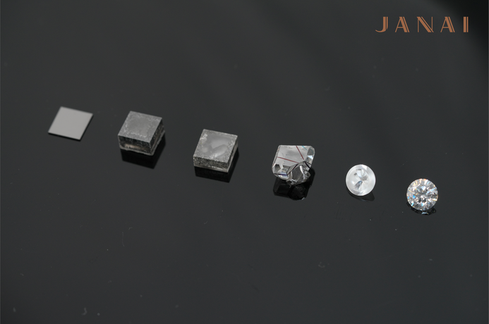Every CVD lab grown diamond begins with a seed. A diamond seed is a thin slice of a real diamond, used as the foundation of which the lab diamond will grow. It is upon the diamond seed in which layers of carbon bonds together, building slowly over weeks to months forming a cubic shaped diamond rough. To give the best chances of achieving a flawless diamond, type IIA diamond seeds are chosen for their purity and potential. CVD Type IIA diamonds are the most chemically pure form of diamond due to the low amount of nitrogen, making them extremely hard and bright.